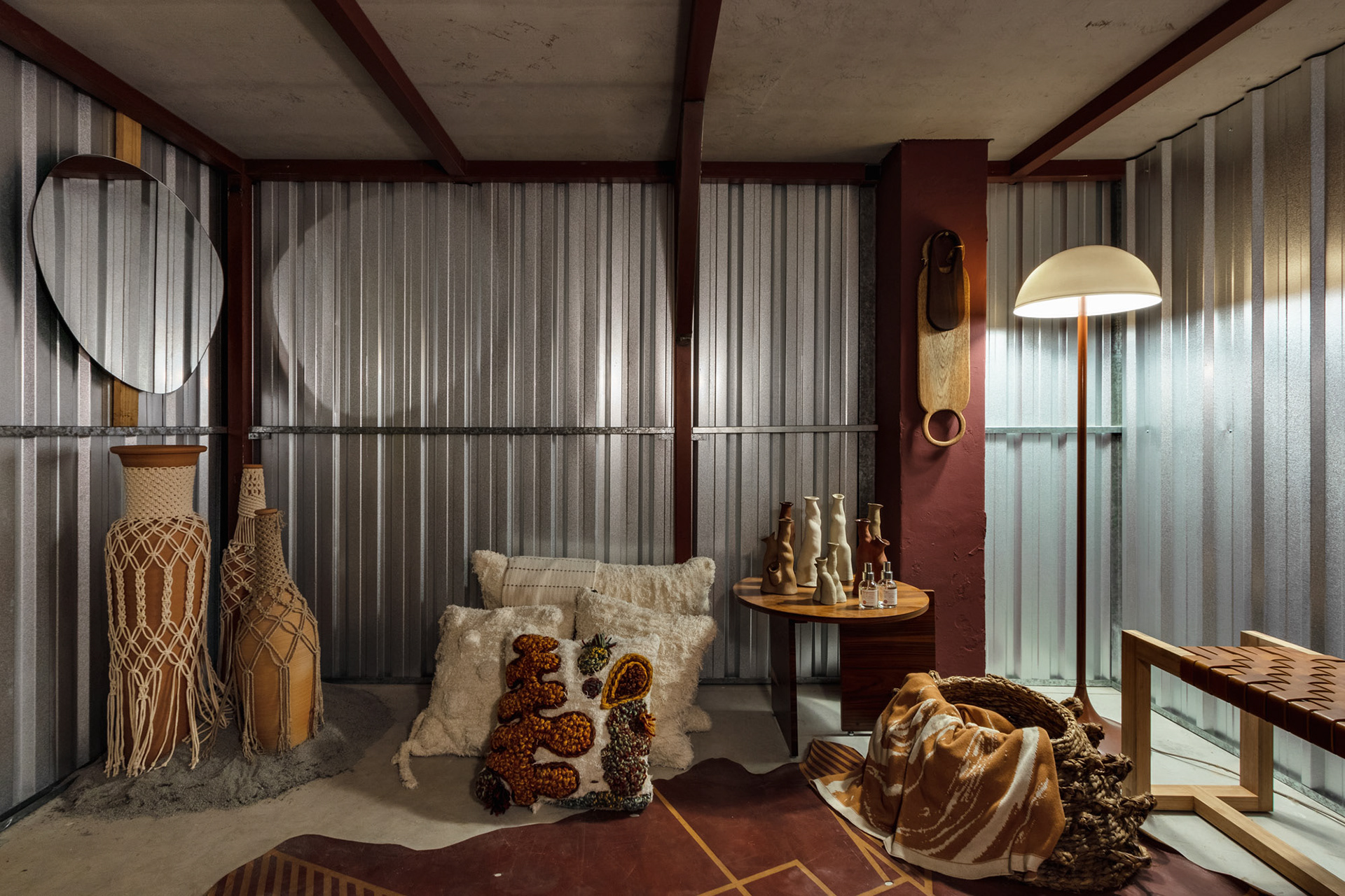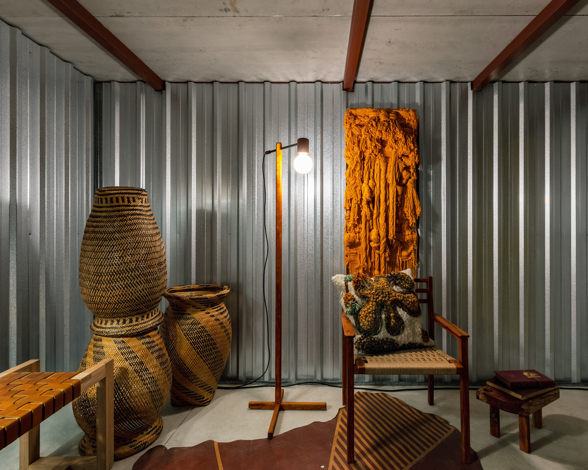 O convite da Feira na Rosenbaum para a ambientação de um box na Semana de Design de São Paulo foi um chamado para contar histórias e criar uma narrativa através do design. O espaço teve como premissa a exaltação da força e da generosidade da produção nacional. A escolha de peças em materiais naturais e ângulos marcados, em diversas texturas e padronagens, buscou a representação, na unidade, da pluralidade do design brasileiro.
